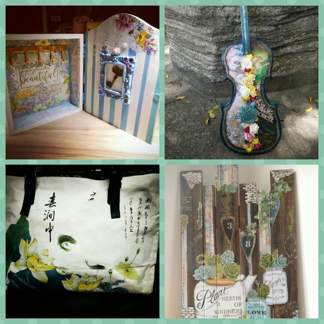 餐巾紙入門、構圖的連貫性、布膠處理、餐巾紙立體、型染、漸層顏色處理、蕾絲紙應用、乾刷、型染應用。