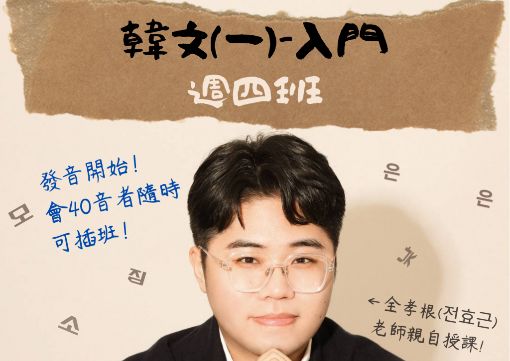 ◆ 同場加映:以下韓文課程時段也歡迎參考 週三晚上,入門(一)補充班(7/6-8/26)111D809:https://cce.ntue.edu.tw/course/4759 週三晚上,初級(一)(9/28-12/14)111D835:https://cce.ntue.edu.tw/course/4790