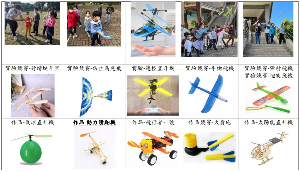 實驗:仿生蝴蝶飛;實驗競賽:仿生鳥兒飛;作品:動力滑翔機 能說出蝴蝶或鳥兒飛是怎麼產生力量的 能自己手作出仿生鳥,並了解是怎麼飛的 能知道作怎樣的調整能讓仿生鳥飛得更順暢更久 |
