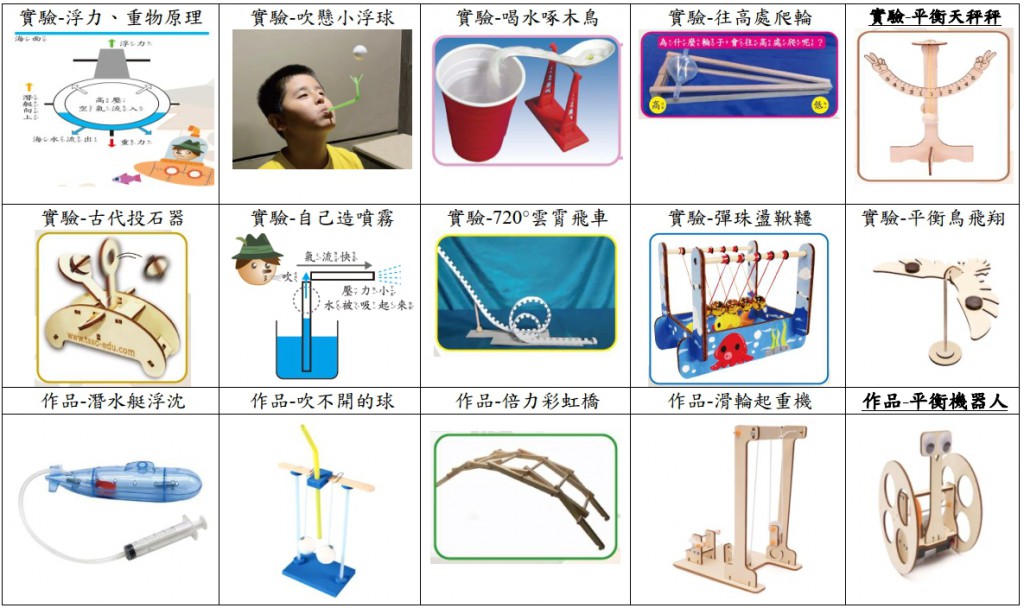 實驗:平衡鳥飛翔、平衡天秤秤 作品:平衡機器人 學生會認識單擺定律、慣性定理 學生會知道看似平凡的家用電器含了廣大的科學原理 學生能說出家裡的洗衣脫水是什麼原理 |