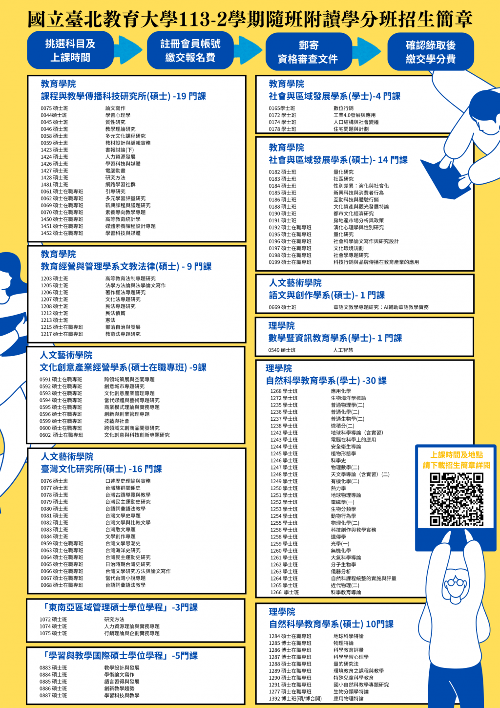 - 填寫學分班申請表(含身分證正反面影本、帳戶資訊),詳請下載「招生簡章」