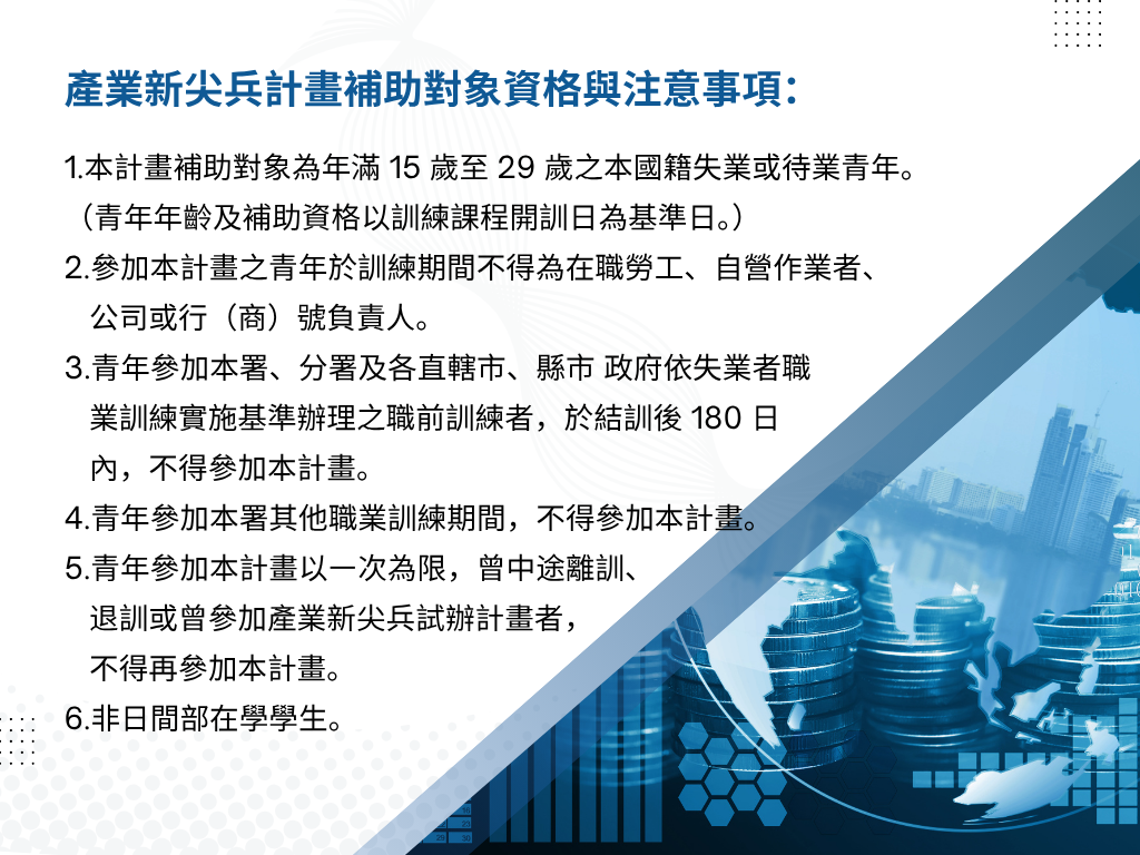 5.甄試⽅式包含審查報名資料及⾯談,評估學員之參訓動機與資格條件。