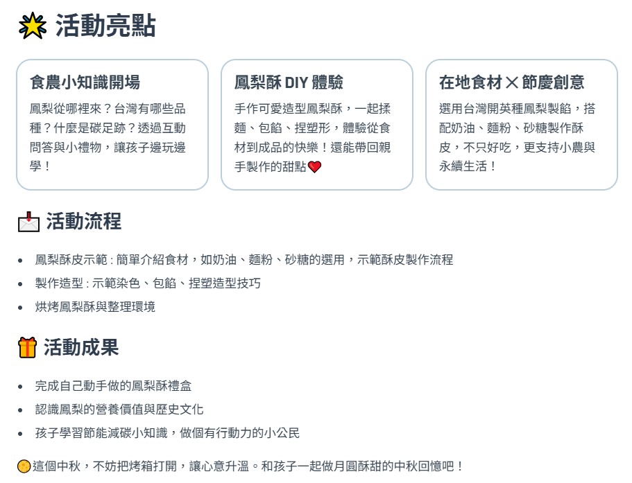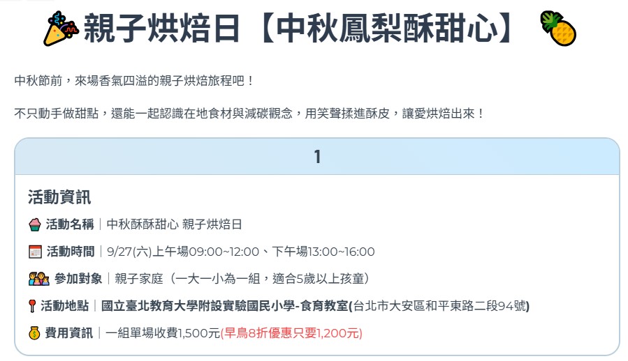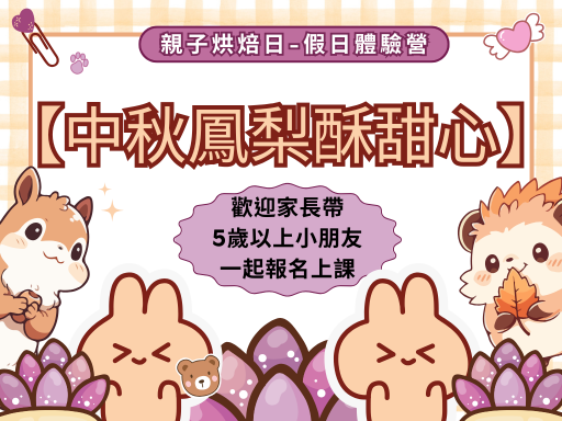 114D905 親子烘焙日【中秋鳳梨酥甜心】下午場13:00~16:00
