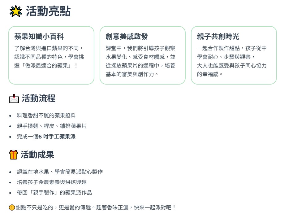 114D902 親子烘焙日【親子蘋果派派對】上午場09:00~12:00