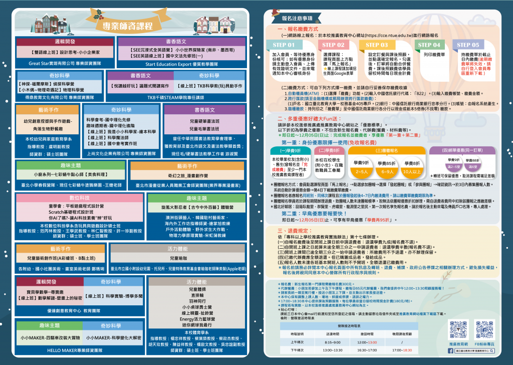 多種課程席次有限,要報要快!早鳥優惠只到110/12/5(日)!